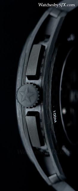 Neben dem Aluminium- und Keramikgehäuse sind die Blende und der Gehäuseboden des El Primero Lightweight Carbonfaser, während die Krone und Drücker PVD-beschichtetes Titan sind.